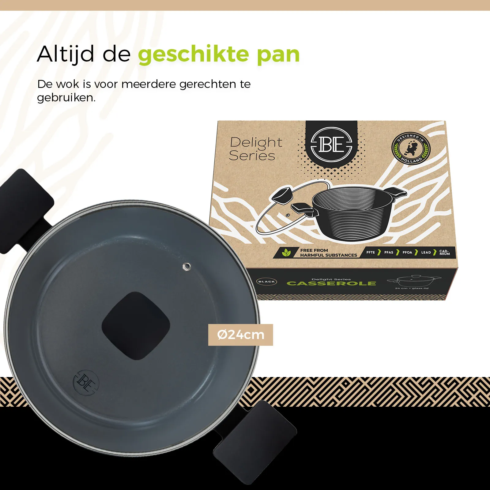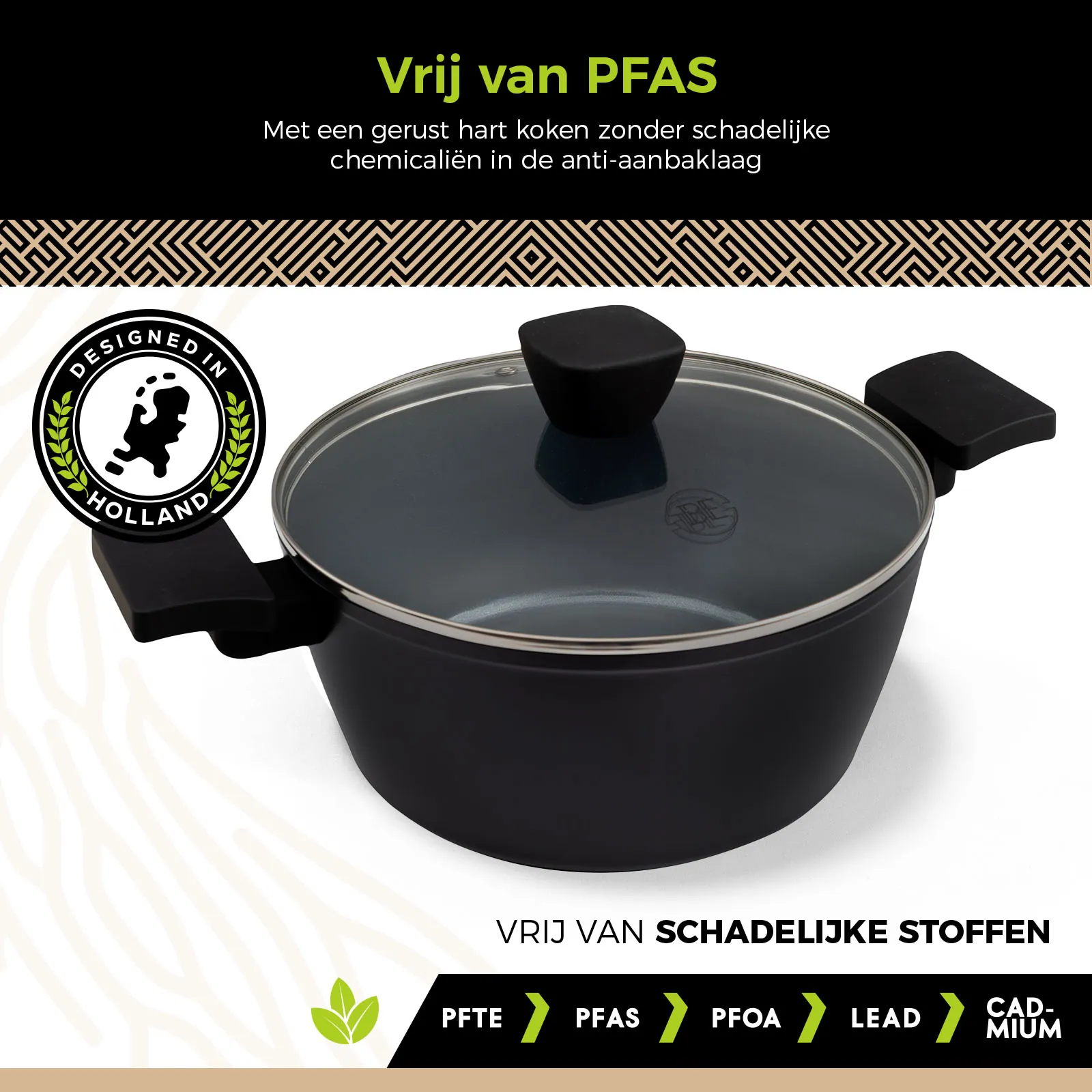 Bij BE Living staat jouw veiligheid centraal. De pannen zijn volledig vrij van PFAS, zodat je met een gerust hart kunt koken zonder schadelijke chemicaliën die in sommige anti-aanbaklagen worden aangetroffen. Dit maakt ze een verantwoorde keuze voor jou en je gezin.