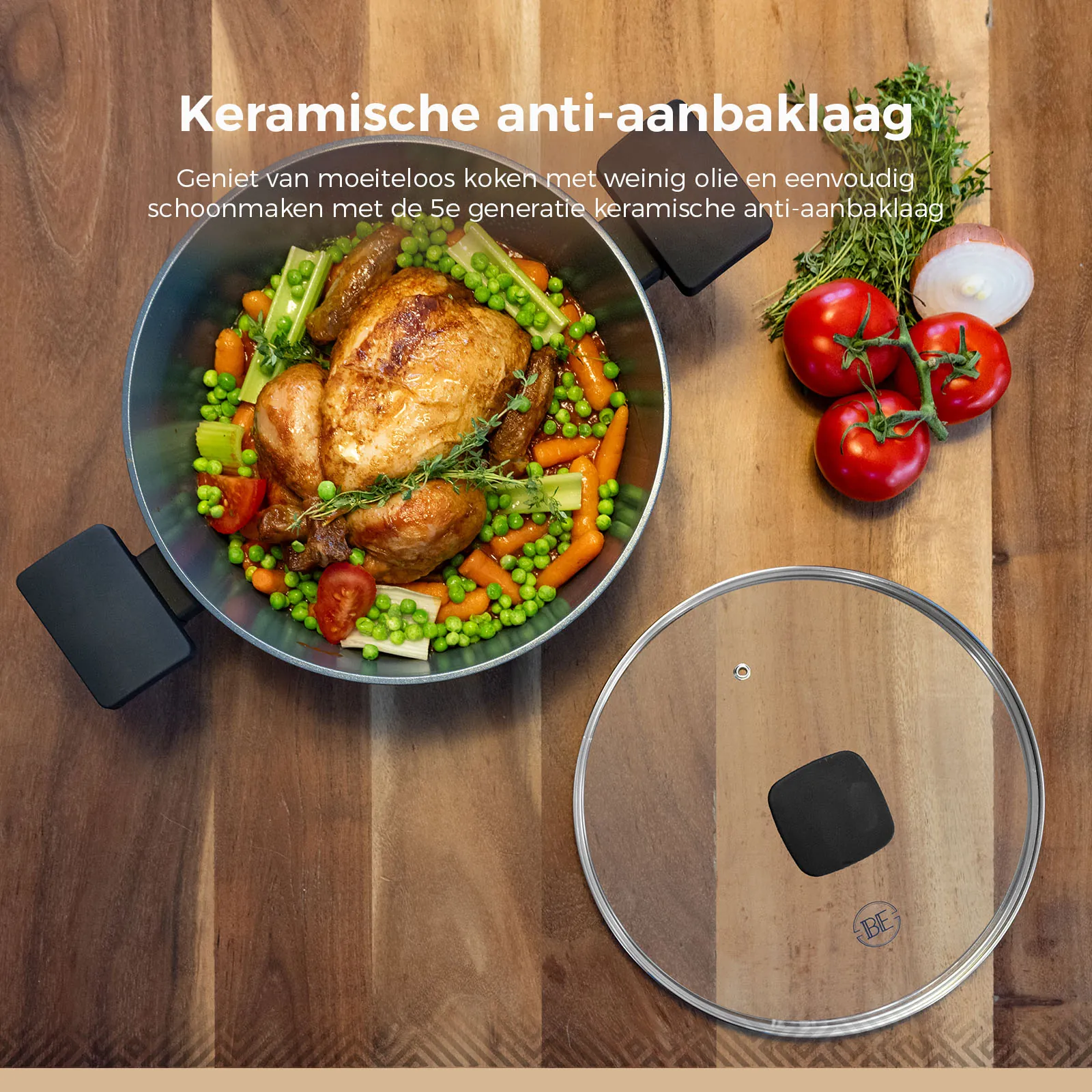 De geavanceerde 5e generatie keramische anti-aanbaklaag biedt uitzonderlijke prestaties. Geniet van moeiteloos koken met weinig olie en eenvoudig schoonmaken. Deze technologie maakt elke maaltijd een plezier om te bereiden.