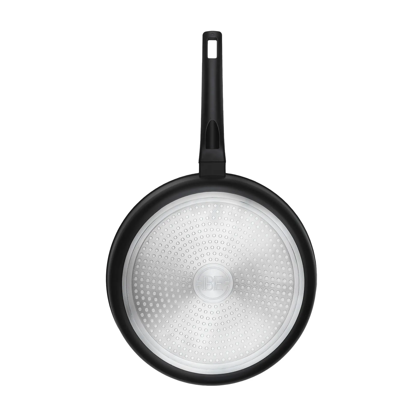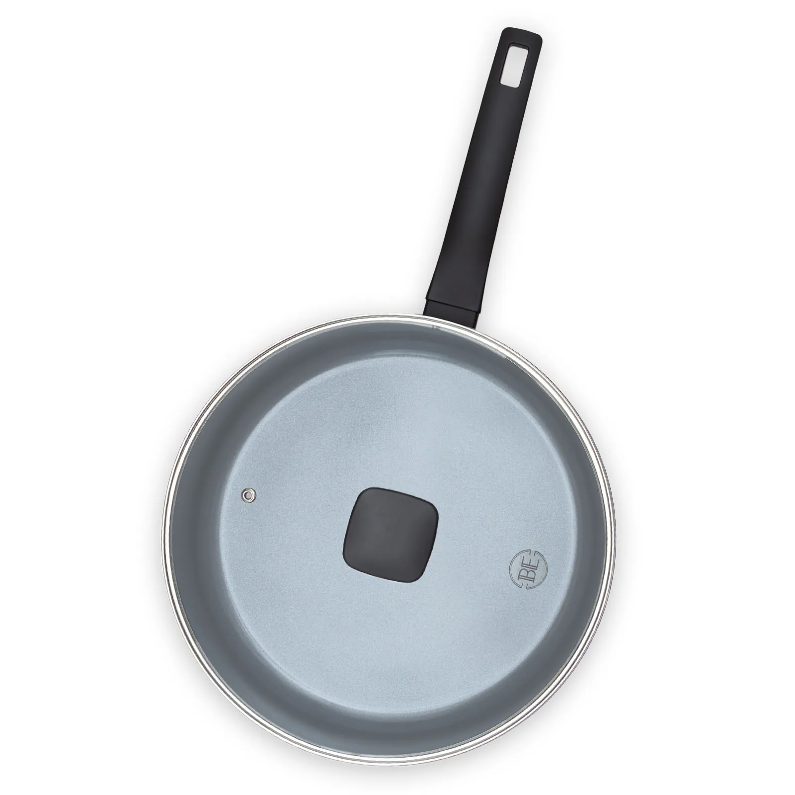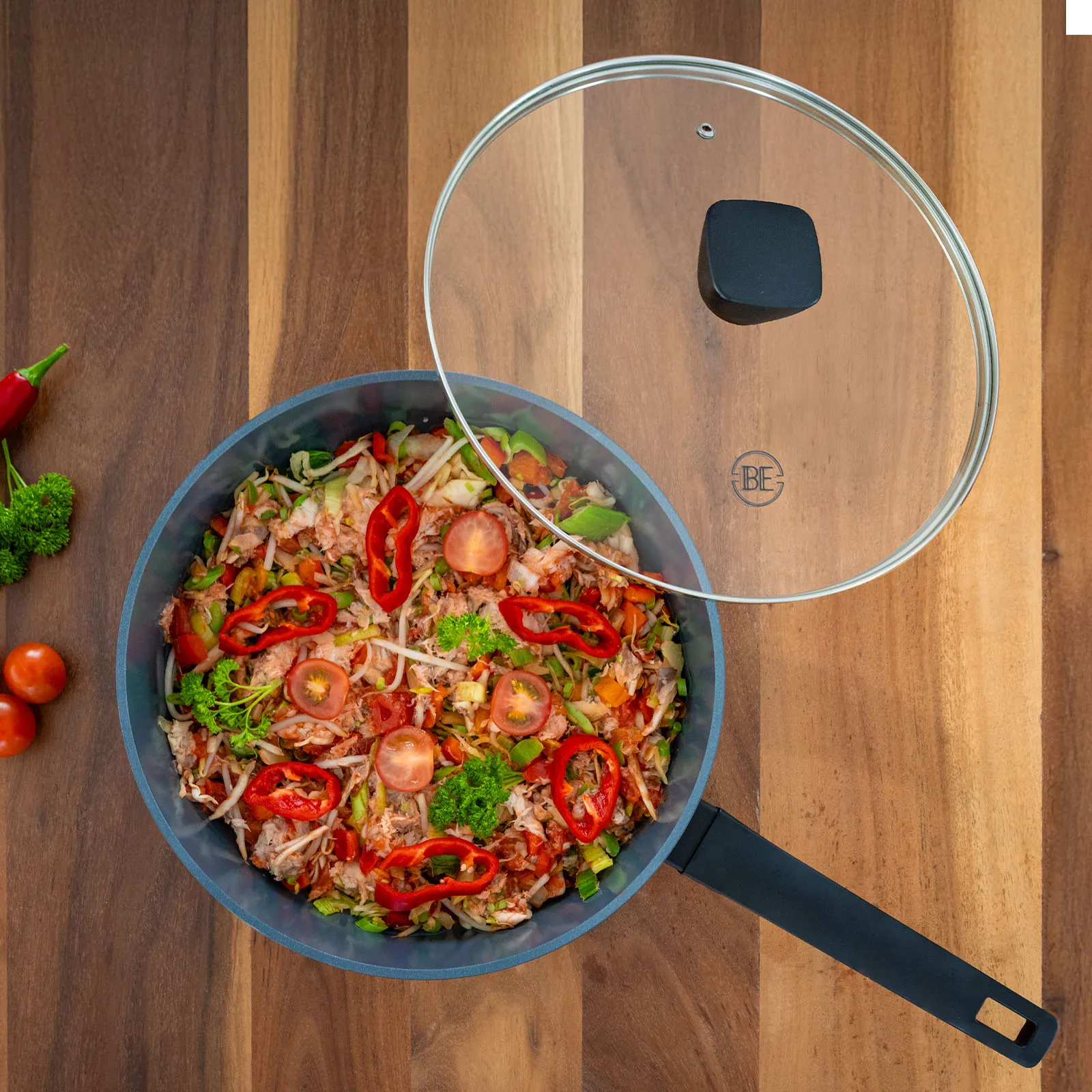 BE Living introduceert een praktische hapjespan met een deksel van 28 cm in een elegante zwarte uitvoering. Geschikt voor alle warmtebronnen, inclusief inductie, en volledig PFAS-vrij. Een must-have voor elke keukenliefhebber!