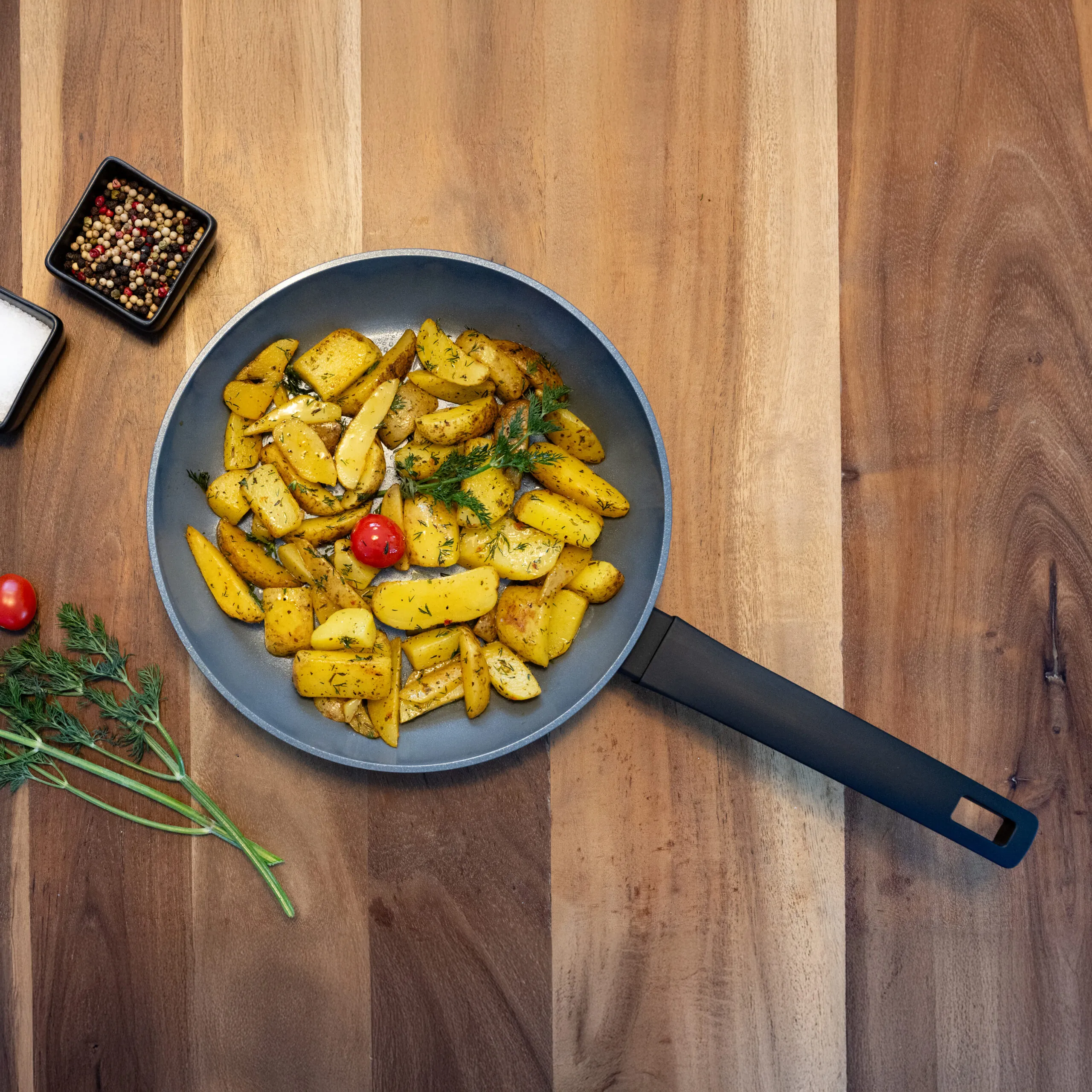 Let op! De koekenpan is niet geschikt voor in de oven.
