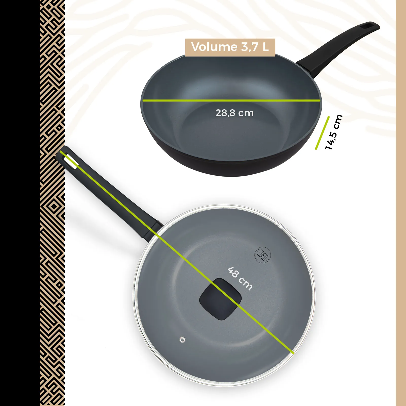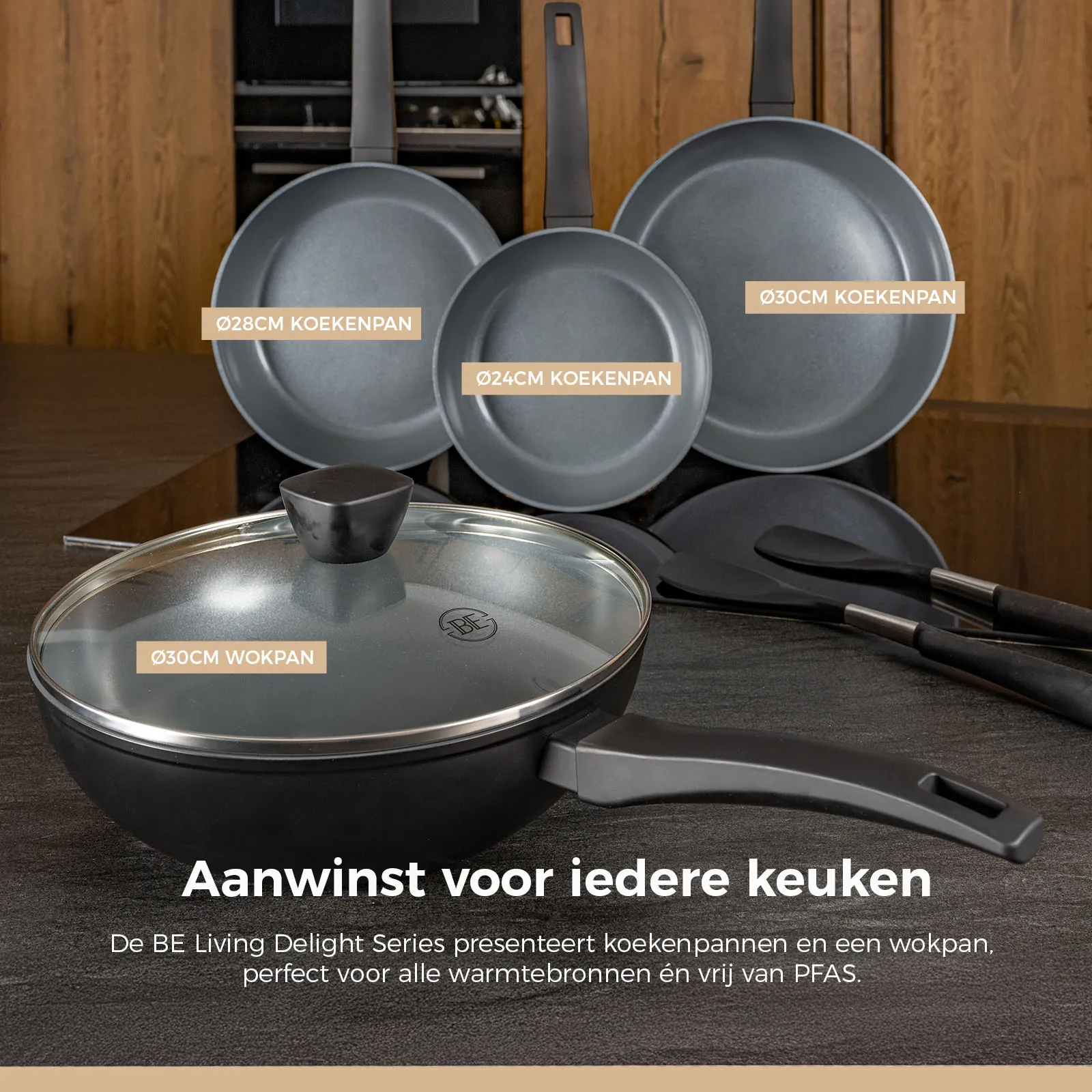 - BE Living Delight Series Wokpan met deksel Ø 28 cm