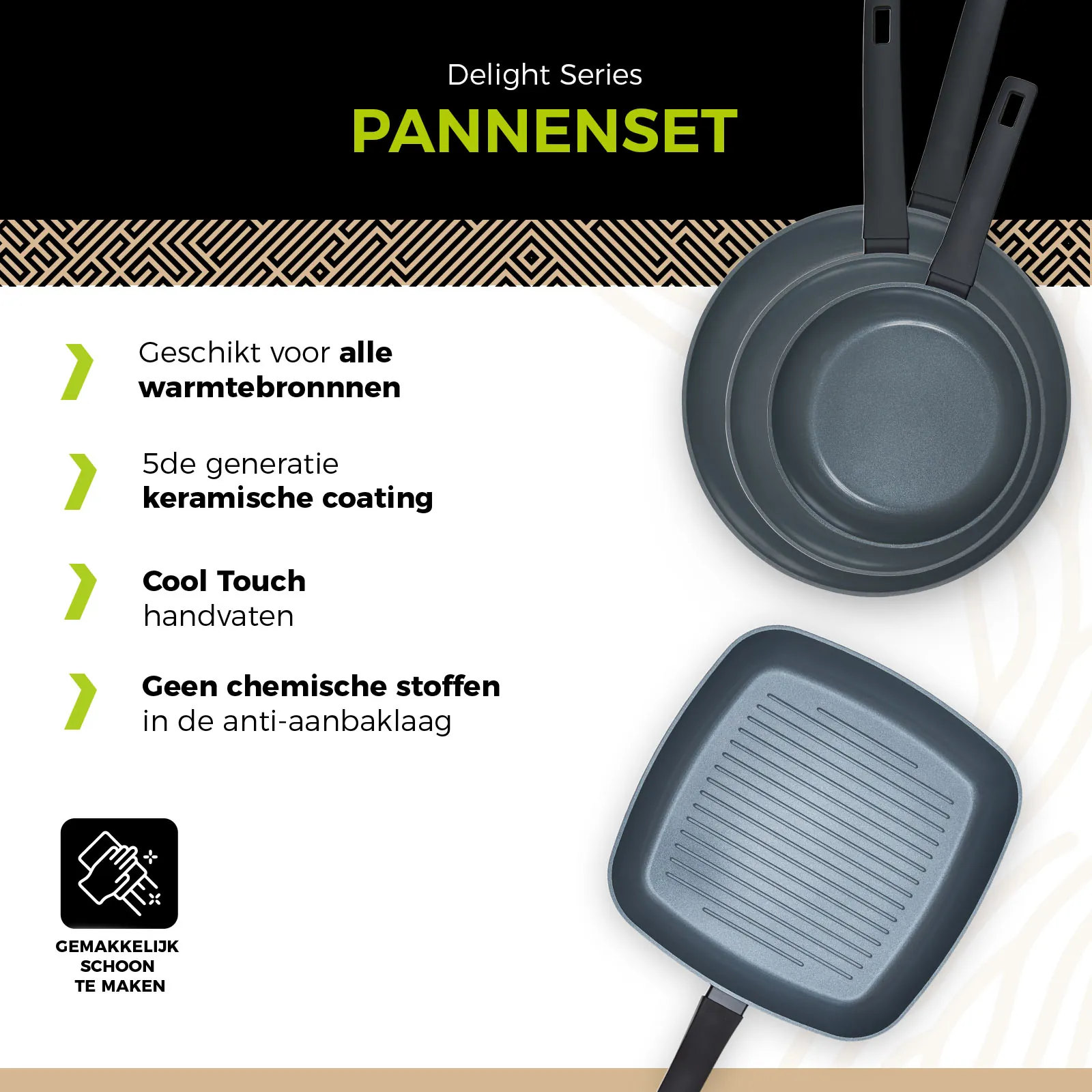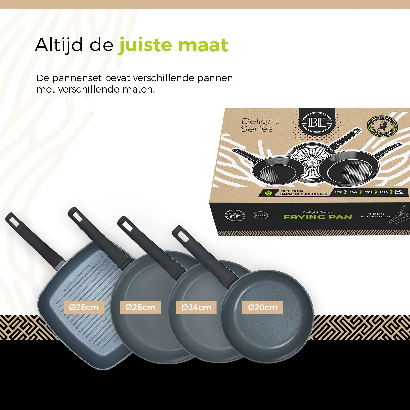 - BE Living Delight Series Koekenpan Ø 20, 24 en 28 cm + Grillpan Ø 28 cm