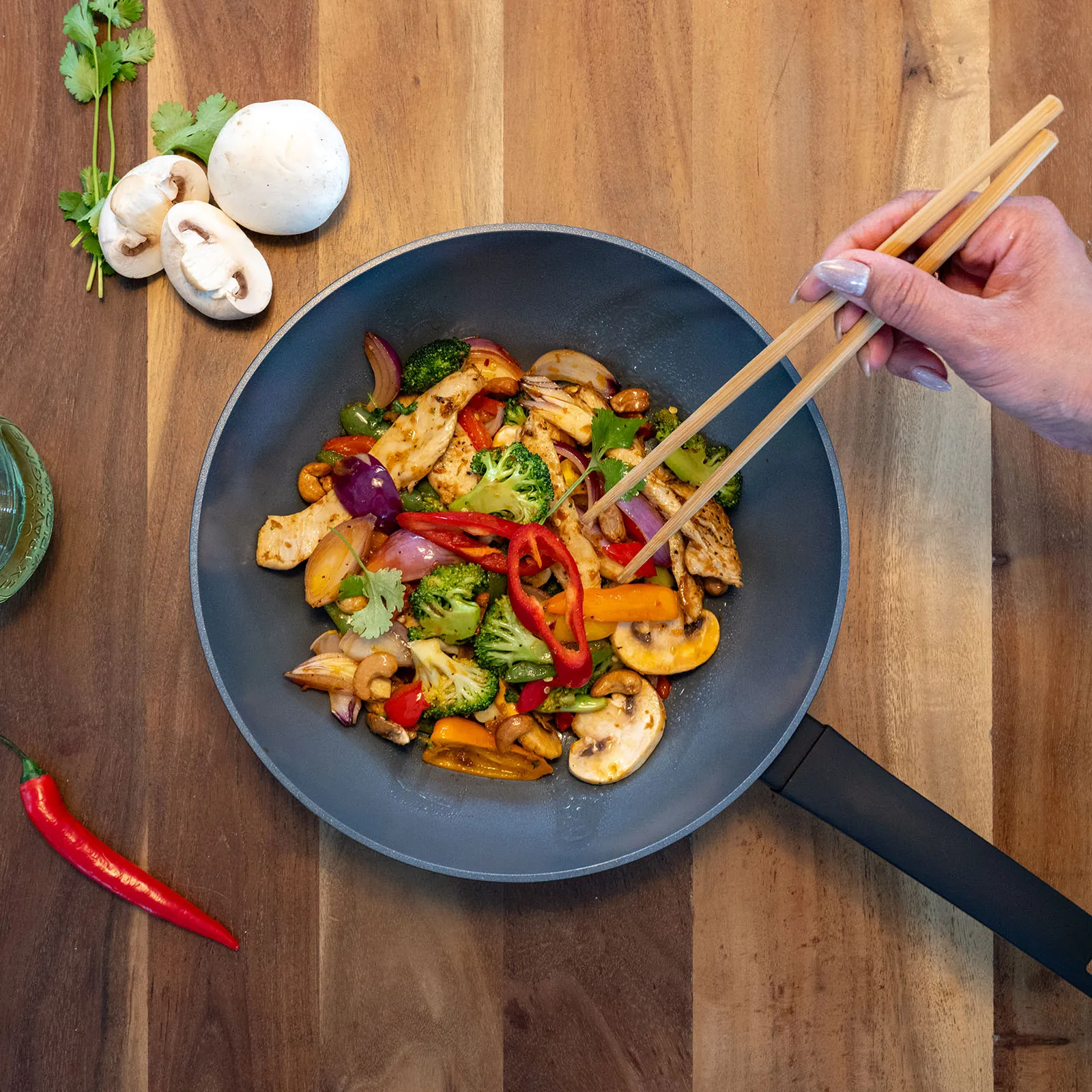- Afmetingen: Koekenpan van Ø 24 en 28 cm, Wokpan Ø 28 cm + Sauspan Ø 28 cm