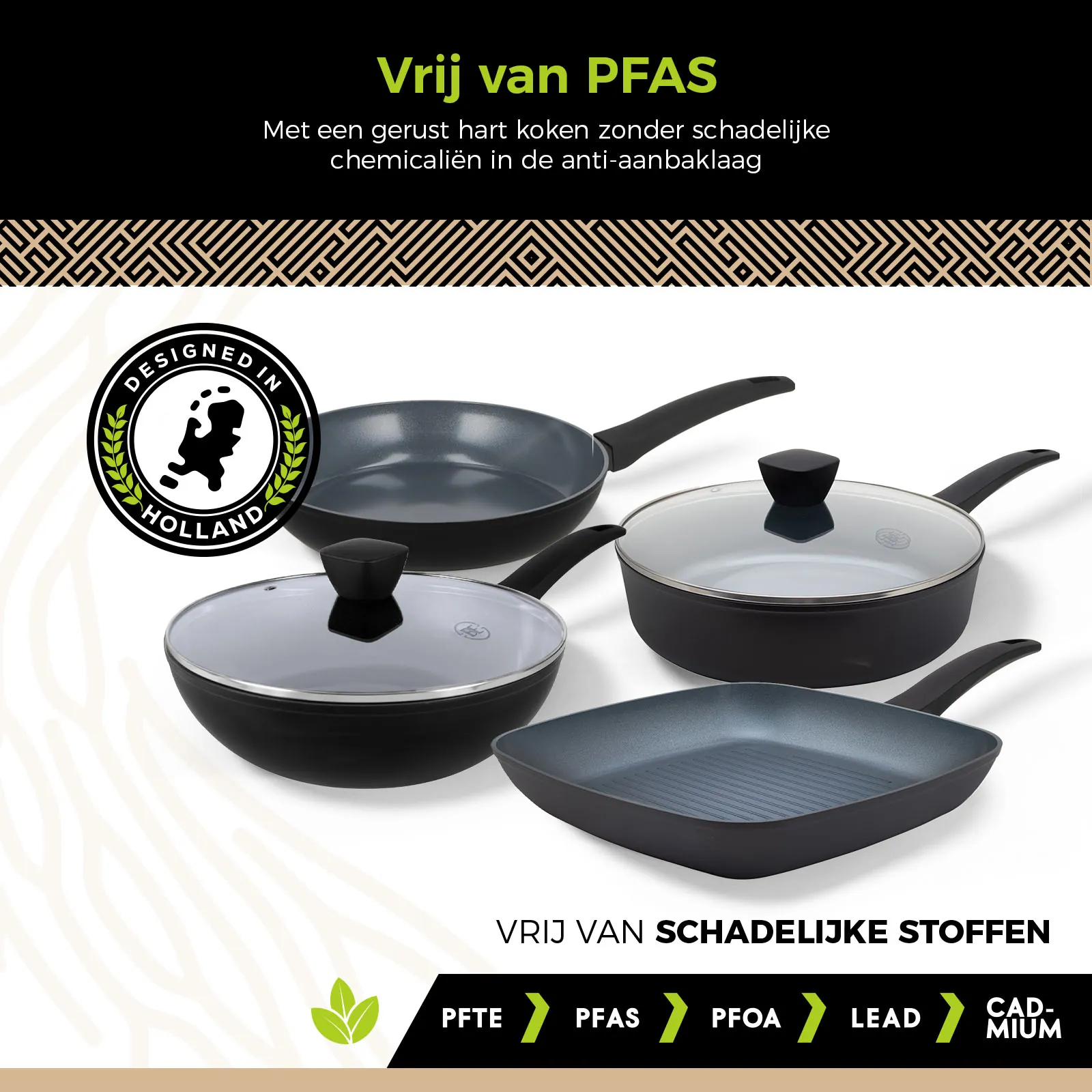 Let op! De pannen zijn niet geschikt voor in de oven.