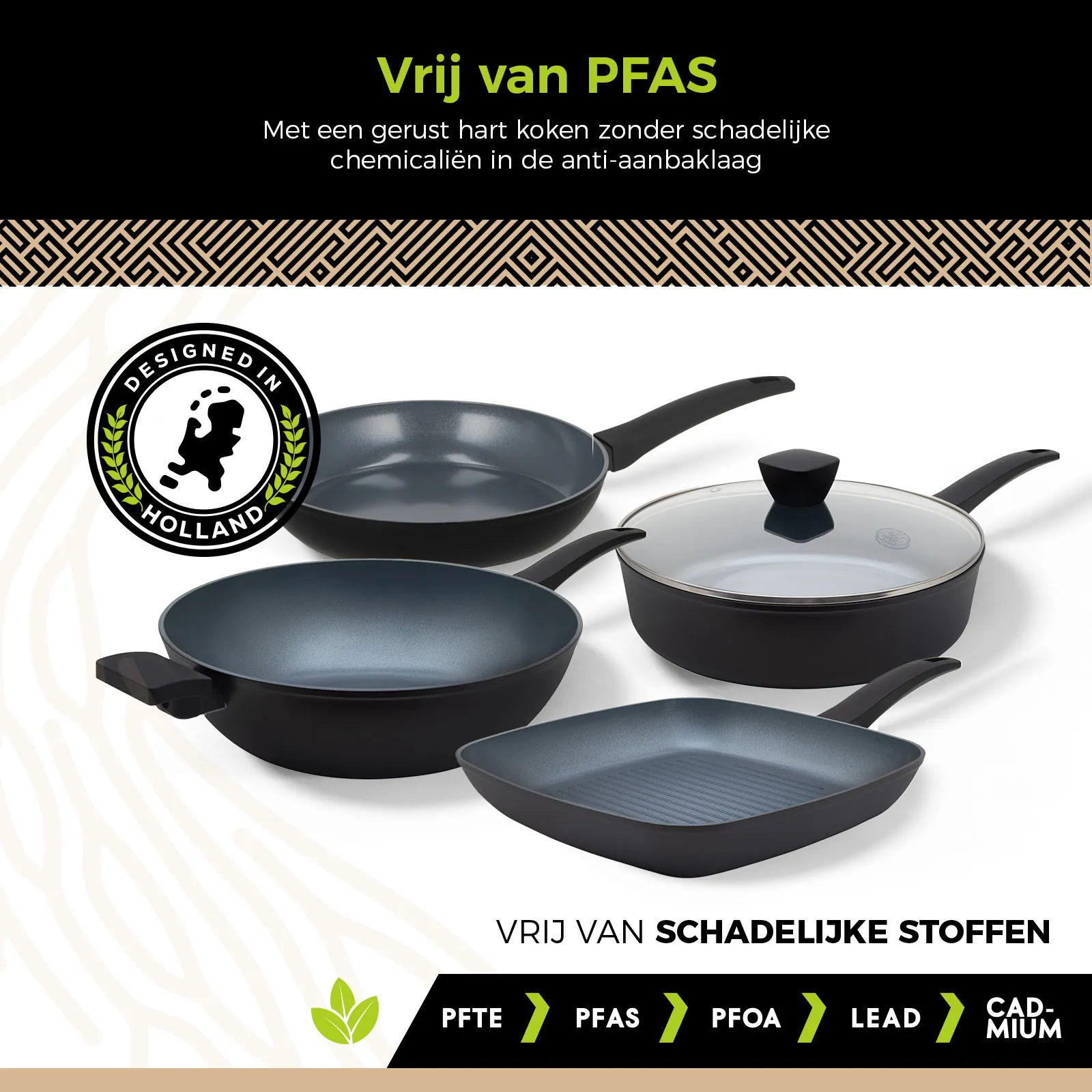 Koken zonder schadelijke stoffen? Dat kan met BE Living. Alle pannen in deze set zijn volledig PFAS-vrij, zodat jij gezond en veilig kunt koken voor jezelf en je gezin. Een verantwoorde keuze, zonder concessies.