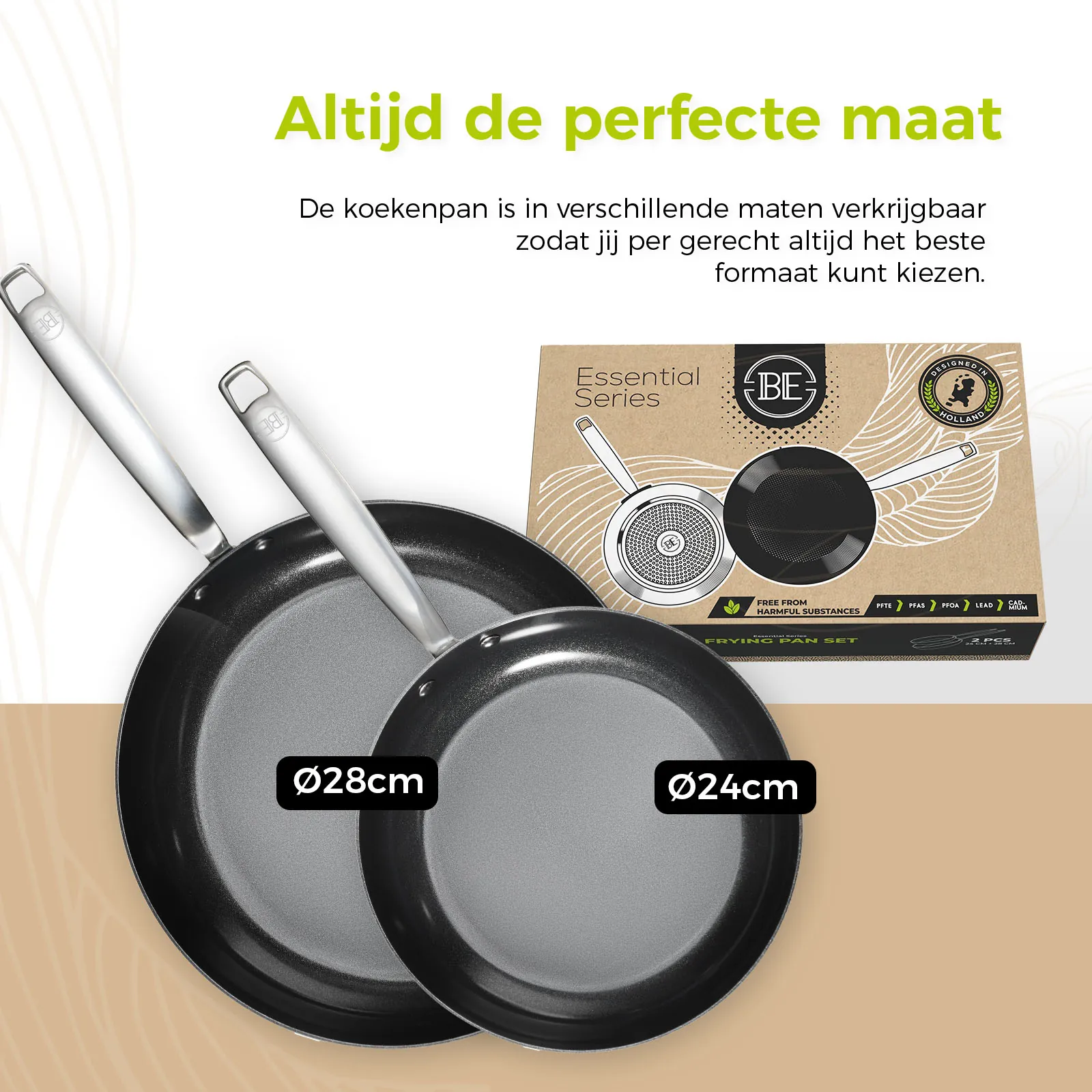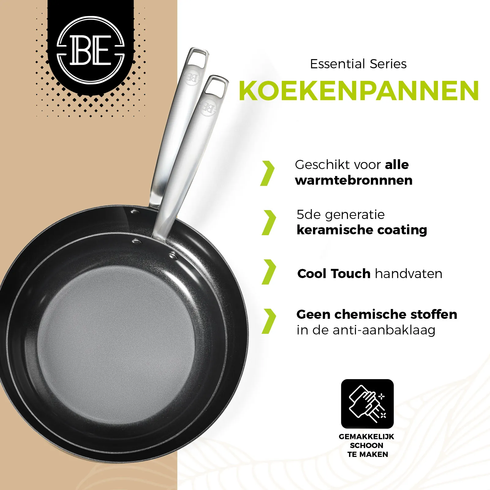 BE Living introduceert een praktische koekenpannenset die geschikt is voor alle warmtebronnen, inclusief inductie, en volledig PFAS-vrij. Een must-have voor elke keukenliefhebber!