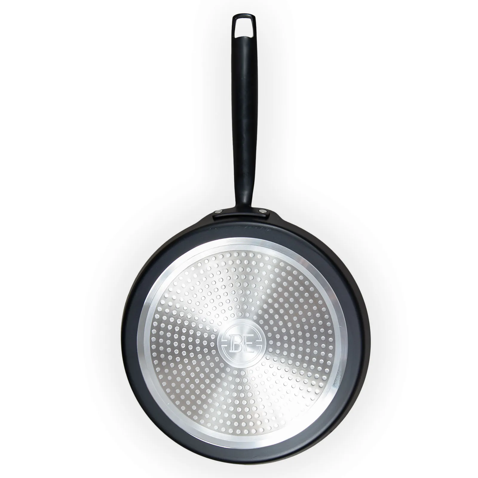 BE Living presenteert een 26 cm zwarte pannenkoekenpan, perfect voor alle warmtebronnen inclusief inductie én vrij van PFAS. Een essentiële aanwinst voor iedere moderne keuken.