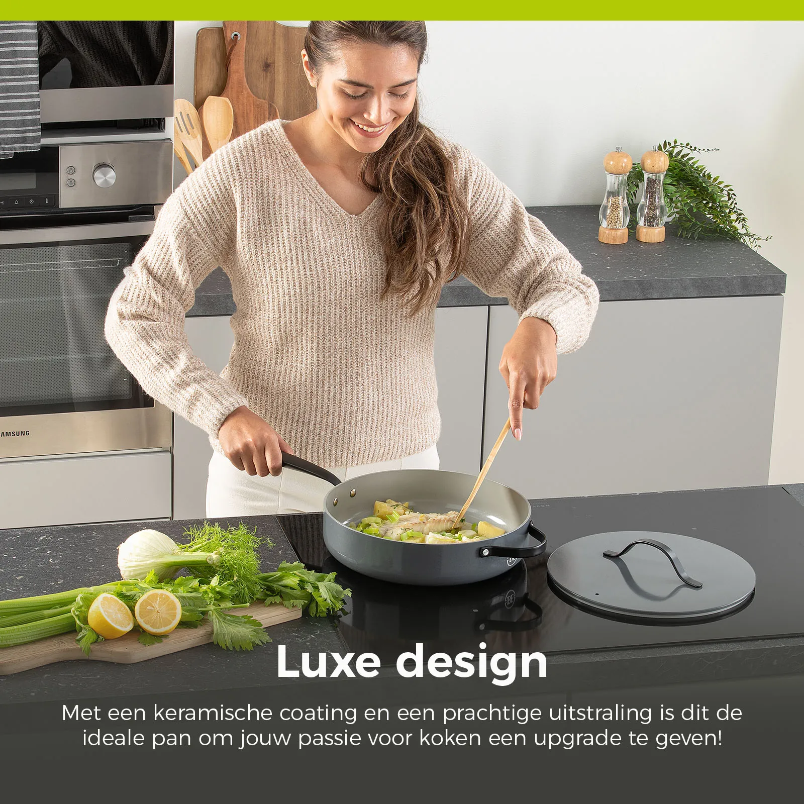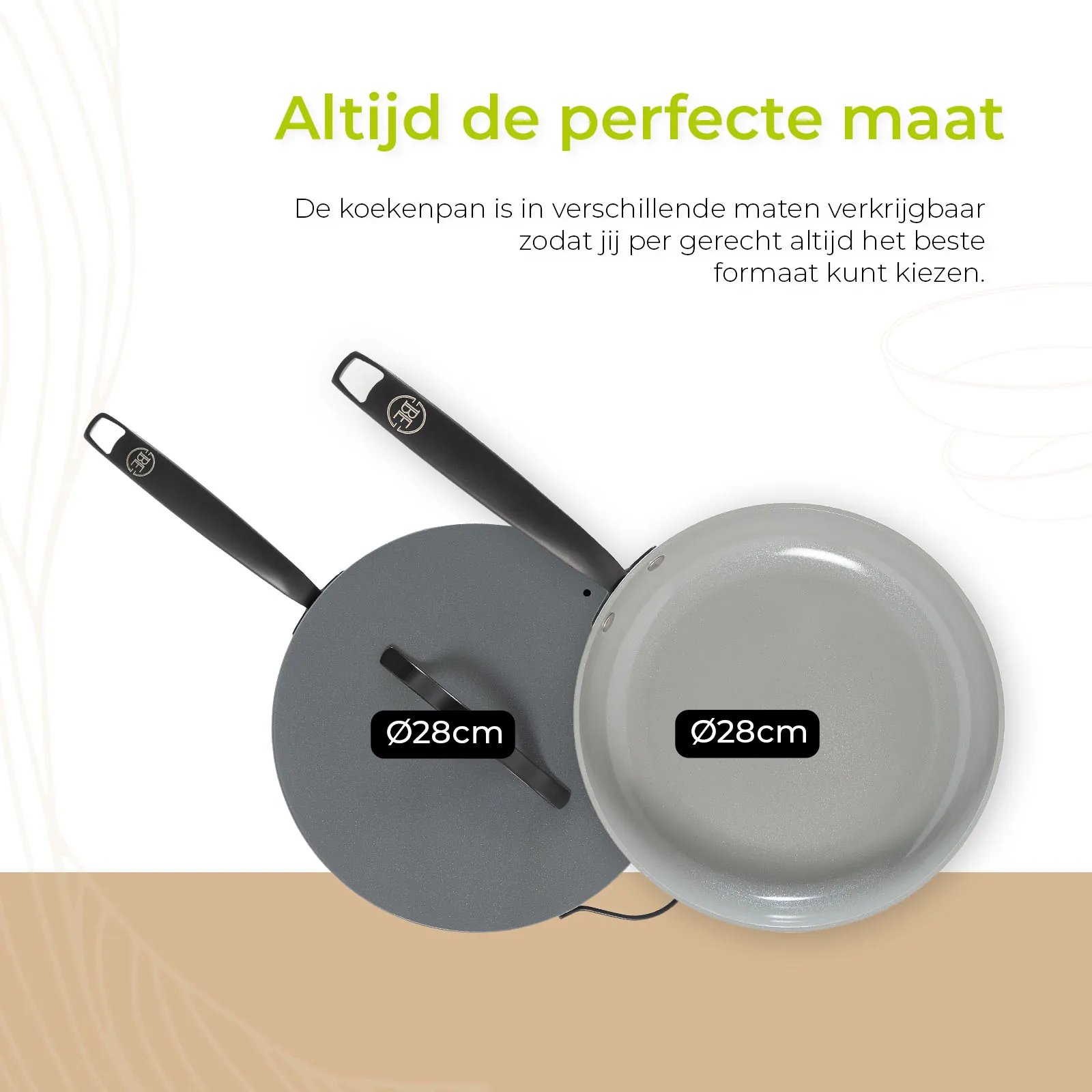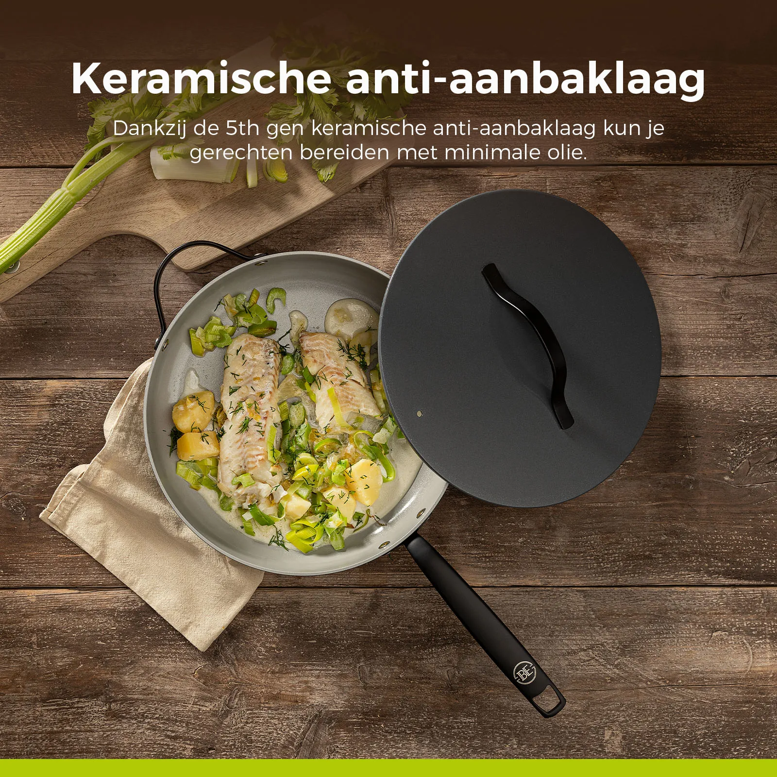 De geavanceerde 5e generatie keramische anti-aanbaklaag biedt uitzonderlijke prestaties. Geniet van moeiteloos koken met weinig olie en eenvoudig schoonmaken. Deze technologie maakt elke maaltijd een plezier om te bereiden, of je nu een omelet bakt in de koekenpan of een stoofgerecht maakt in de hapjespan.