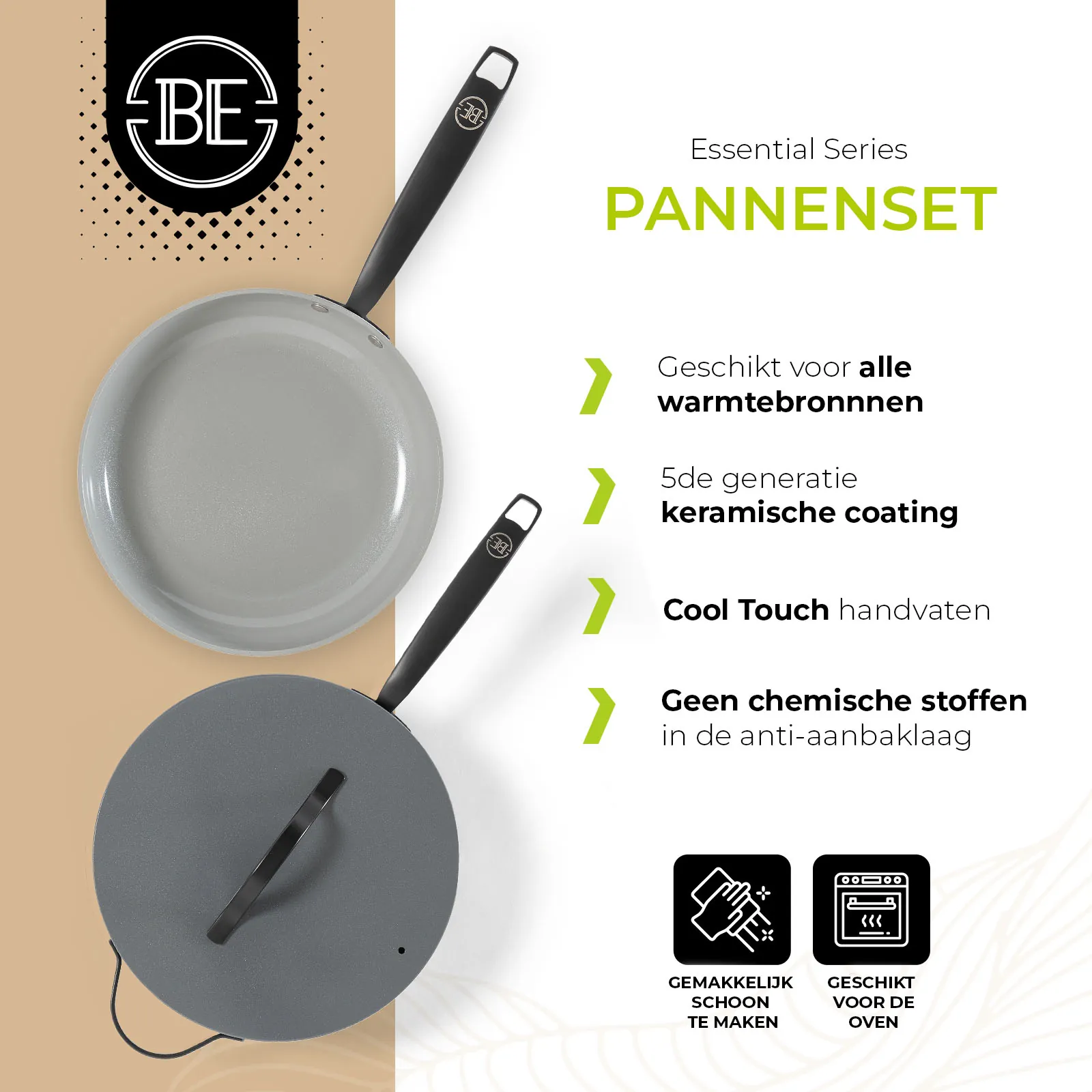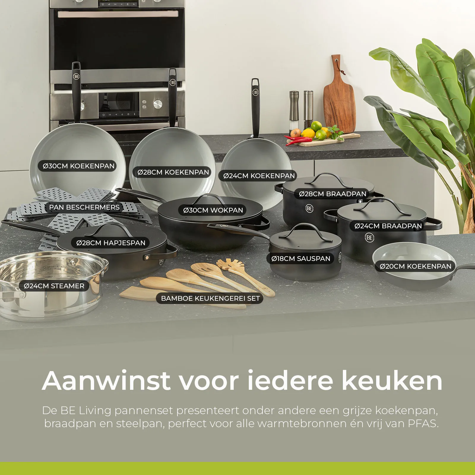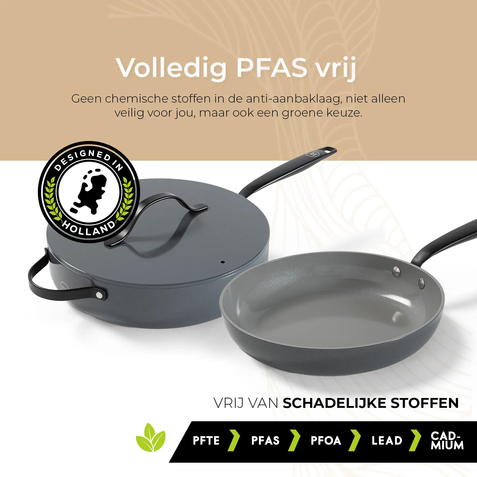 Bij BE Living staat jouw veiligheid centraal. De pannen zijn volledig vrij van PFAS, zodat je met een gerust hart kunt koken zonder schadelijke chemicaliën die in sommige anti-aanbaklagen worden aangetroffen. Dit maakt de pannenset een verantwoorde keuze voor jou en je gezin.