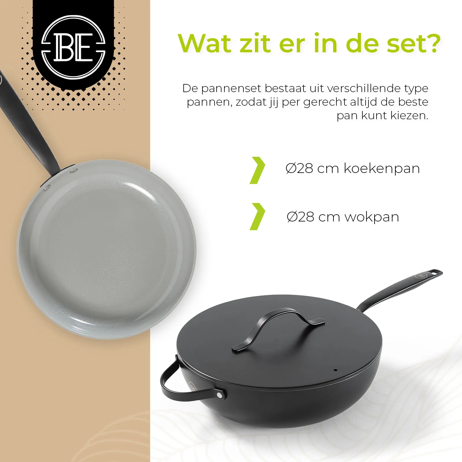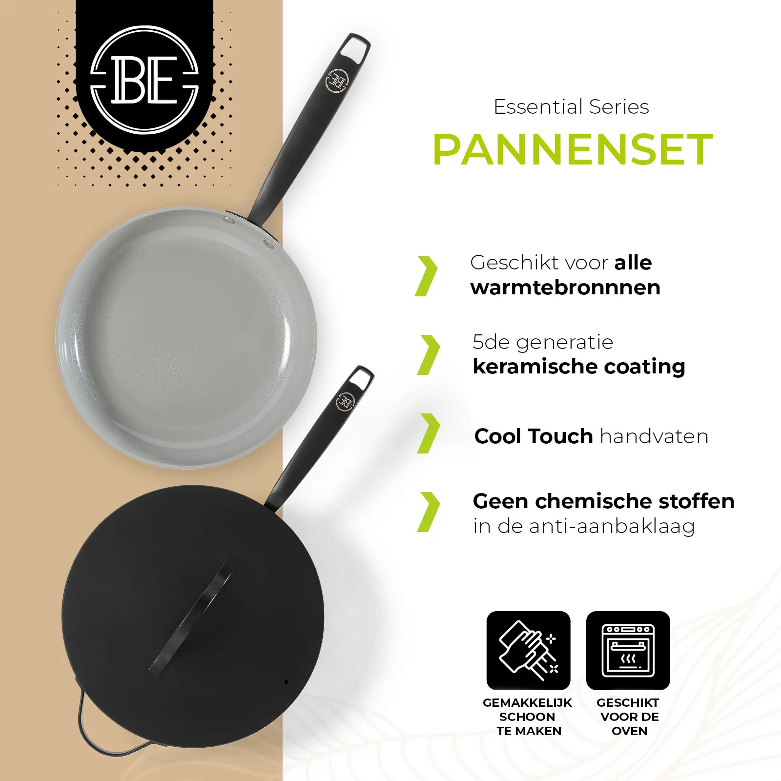 Ontdek BE Living: waar innovatie en stijl samenkomen. Onze pannen zijn ontworpen voor ultiem kookgemak op alle warmtebronnen, met een luxe design en een geavanceerde 5de graads keramische coating voor optimale anti-aanbakeigenschappen. Voorzien van cool touch handvaten en volledig PFAS-vrij, bieden wij gezonde kookoplossingen zonder compromissen op kwaliteit of veiligheid. Bekijk ook onze brandfilm: