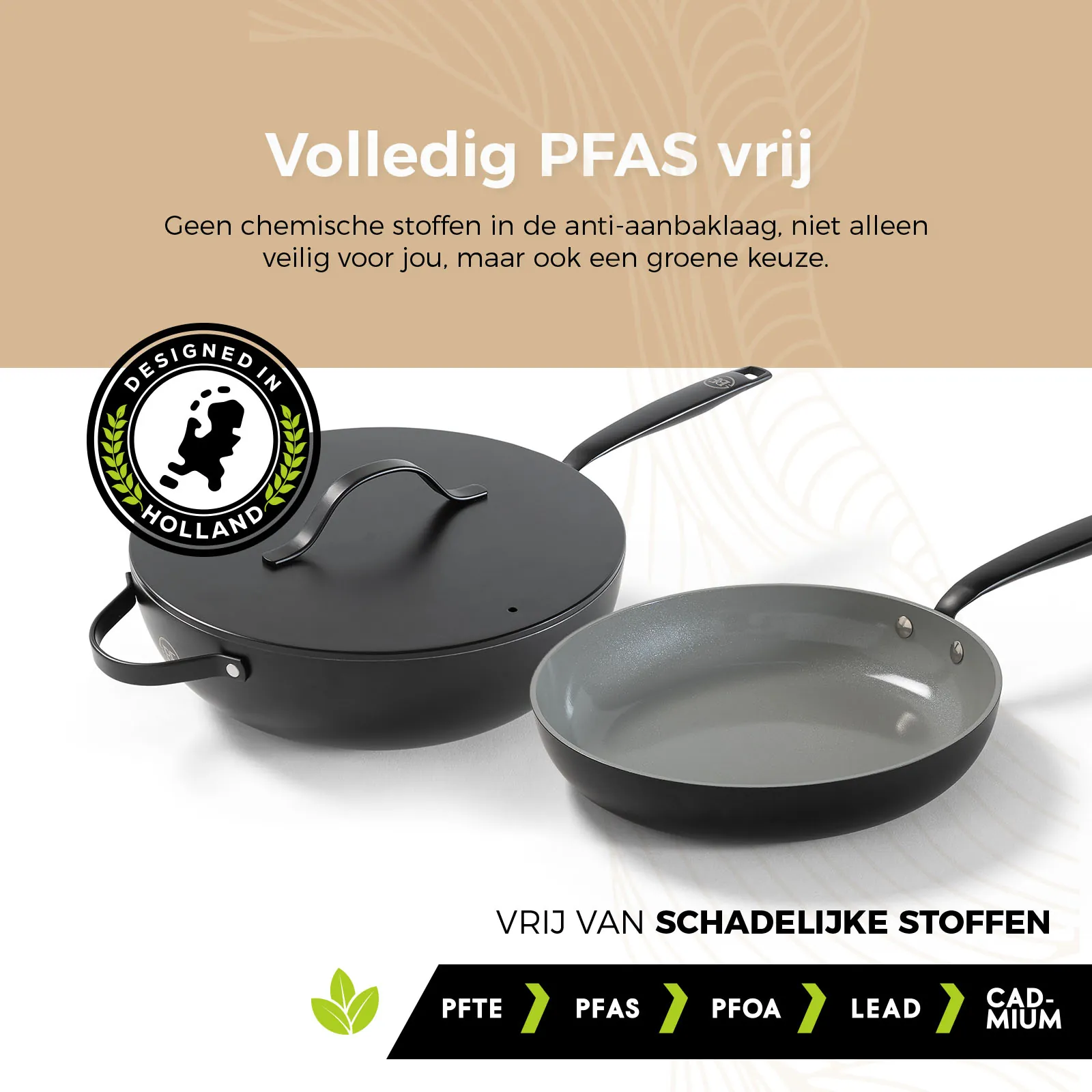 Bij BE Living staat jouw veiligheid centraal. De pannen zijn volledig vrij van PFAS, zodat je met een gerust hart kunt koken zonder schadelijke chemicaliën die in sommige anti-aanbaklagen worden aangetroffen. Dit maakt de pannenset een verantwoorde keuze voor jou en je gezin.