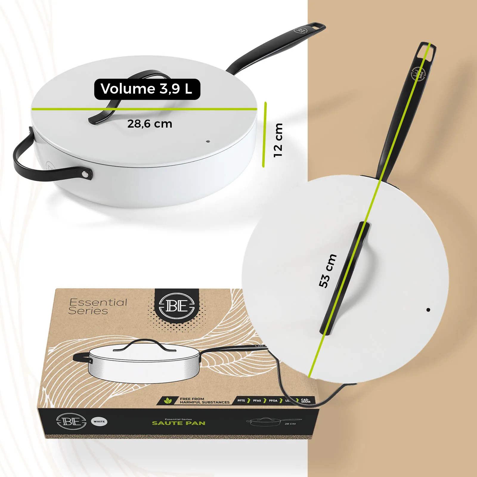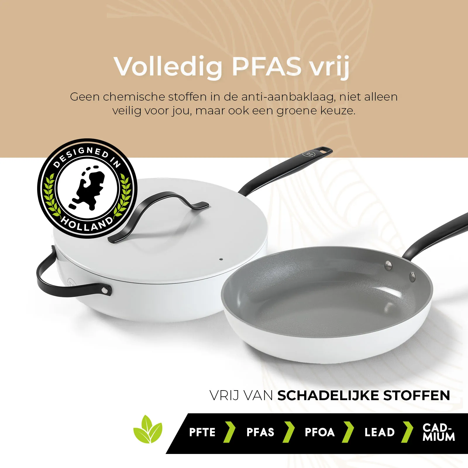 Bij BE Living staat jouw veiligheid centraal. De pannen zijn volledig vrij van PFAS, zodat je met een gerust hart kunt koken zonder schadelijke chemicaliën die in sommige anti-aanbaklagen worden aangetroffen. Dit maakt de pannenset een verantwoorde keuze voor jou en je gezin.