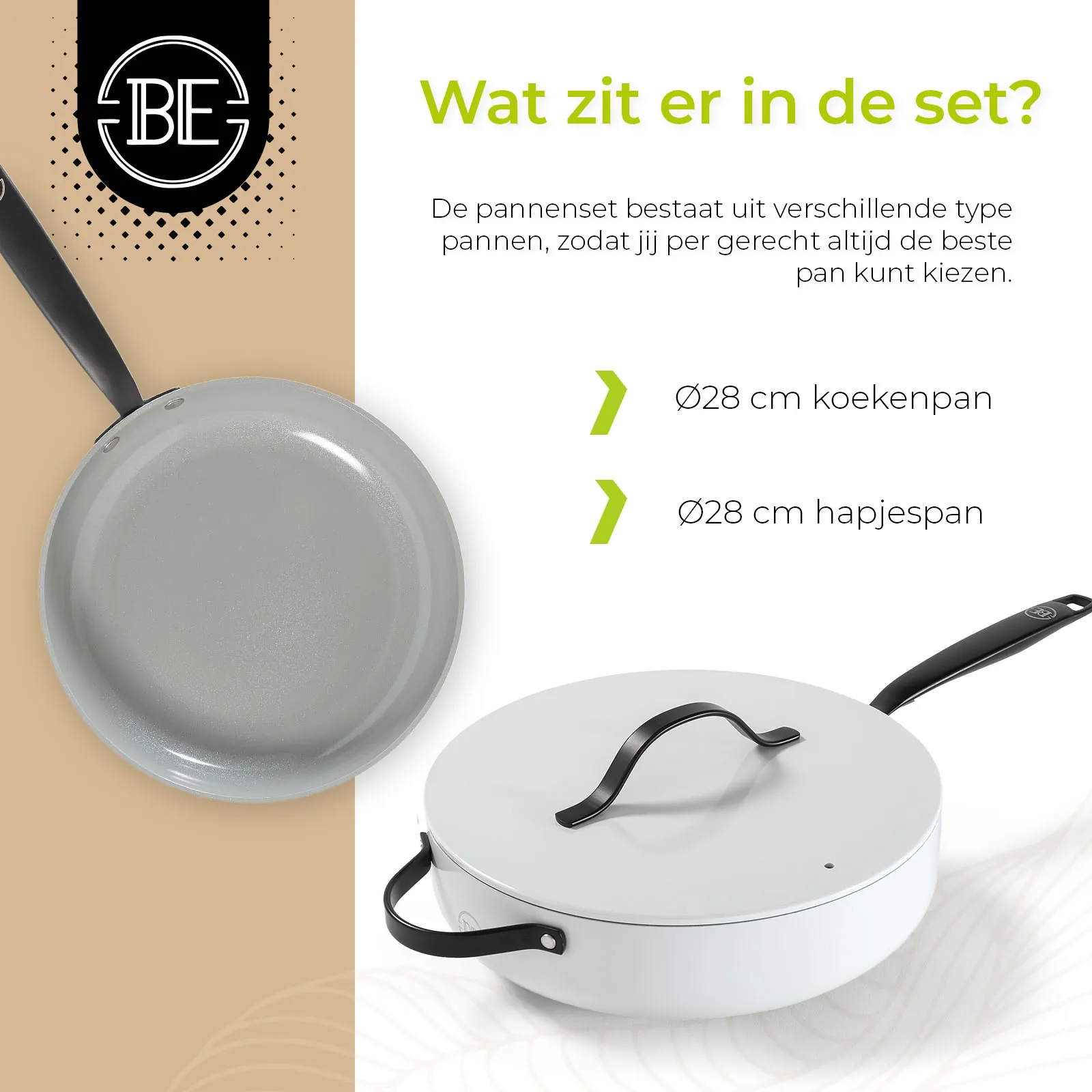 Ontdek BE Living: waar innovatie en stijl samenkomen. Onze pannen zijn ontworpen voor ultiem kookgemak op alle warmtebronnen, met een luxe design en een geavanceerde 5de graads keramische coating voor optimale anti-aanbakeigenschappen. Voorzien van cool touch handvaten en volledig PFAS-vrij, bieden wij gezonde kookoplossingen zonder compromissen op kwaliteit of veiligheid. Bekijk ook onze brandfilm: