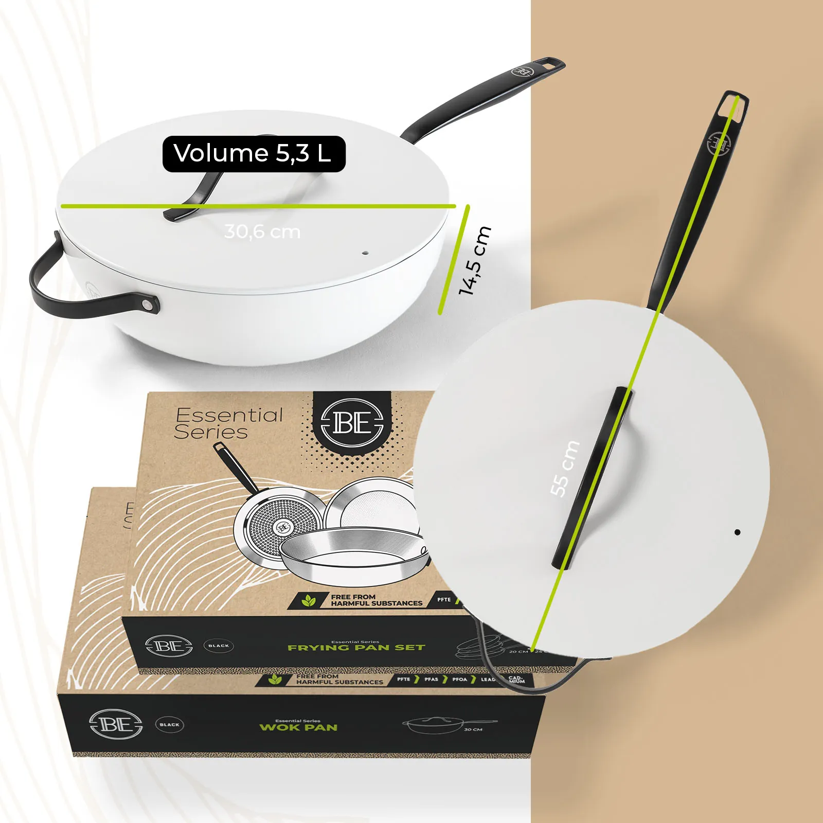 Bij BE Living staat jouw veiligheid centraal. De pannen zijn volledig vrij van PFAS, zodat je met een gerust hart kunt koken zonder schadelijke chemicaliën die in sommige anti-aanbaklagen worden aangetroffen. Dit maakt de pannenset een verantwoorde keuze voor jou en je gezin.
