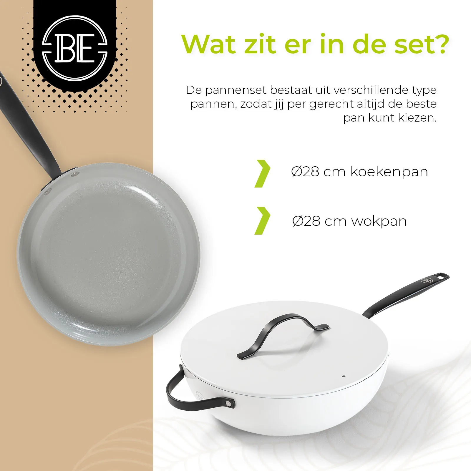 Ontdek BE Living: waar innovatie en stijl samenkomen. Onze pannen zijn ontworpen voor ultiem kookgemak op alle warmtebronnen, met een luxe design en een geavanceerde 5de graads keramische coating voor optimale anti-aanbakeigenschappen. Voorzien van cool touch handvaten en volledig PFAS-vrij, bieden wij gezonde kookoplossingen zonder compromissen op kwaliteit of veiligheid. Bekijk ook onze brandfilm: