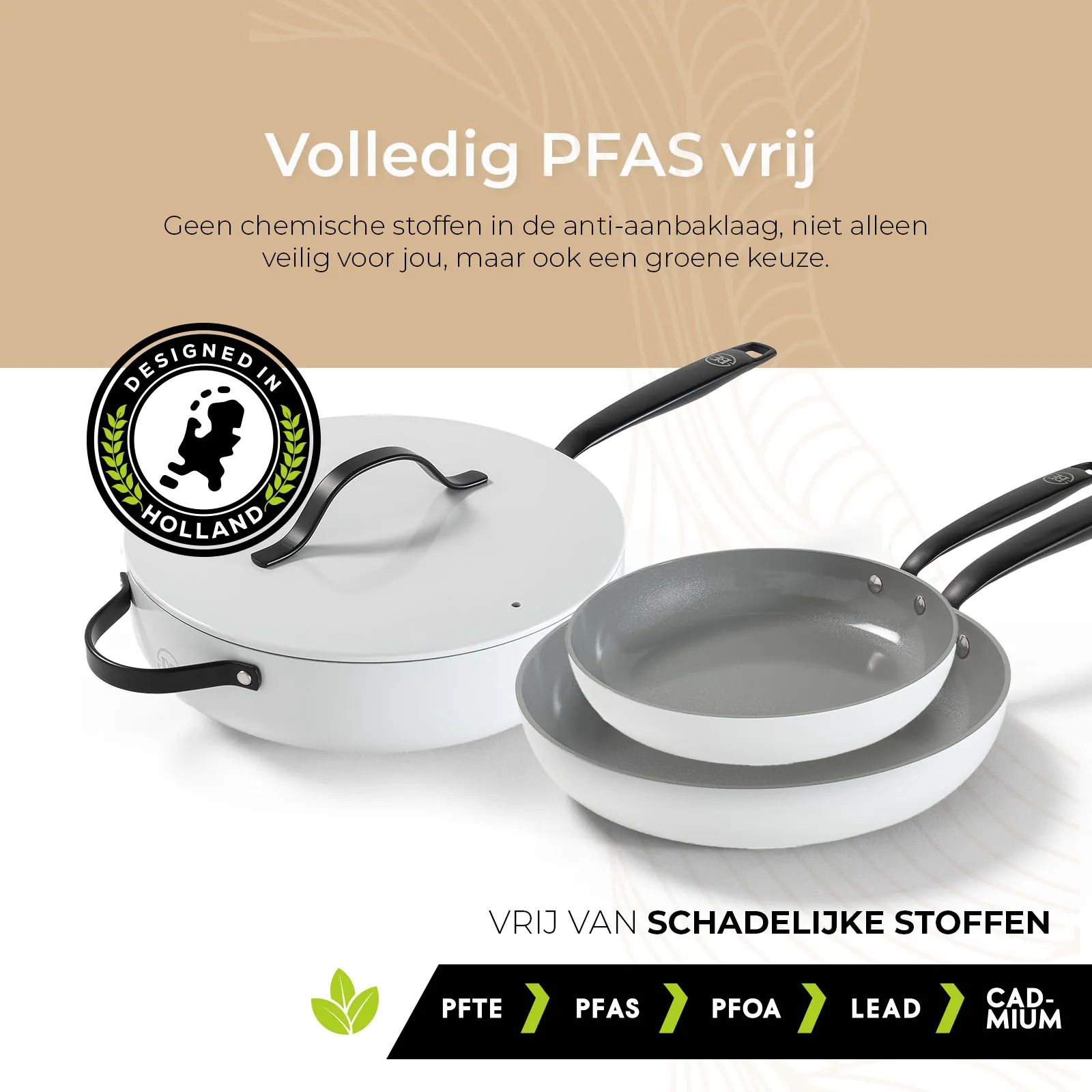 Bij BE Living staat jouw veiligheid centraal. De pannen zijn volledig vrij van PFAS, zodat je met een gerust hart kunt koken zonder schadelijke chemicaliën die in sommige anti-aanbaklagen worden aangetroffen. Dit maakt de pannenset een verantwoorde keuze voor jou en je gezin.