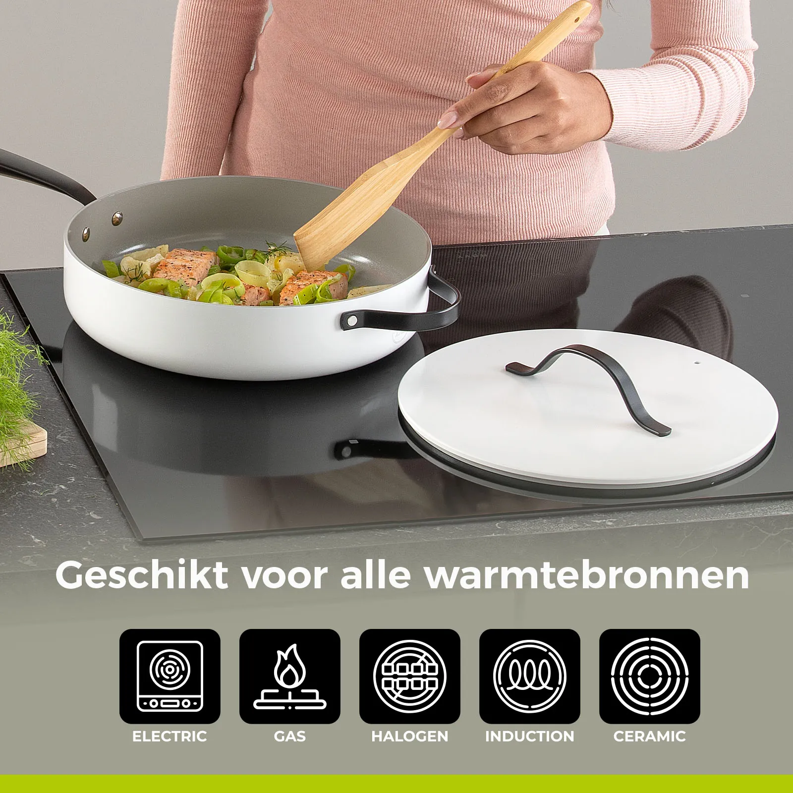 - Geschikt voor alle warmtebronnen, inclusief inductie