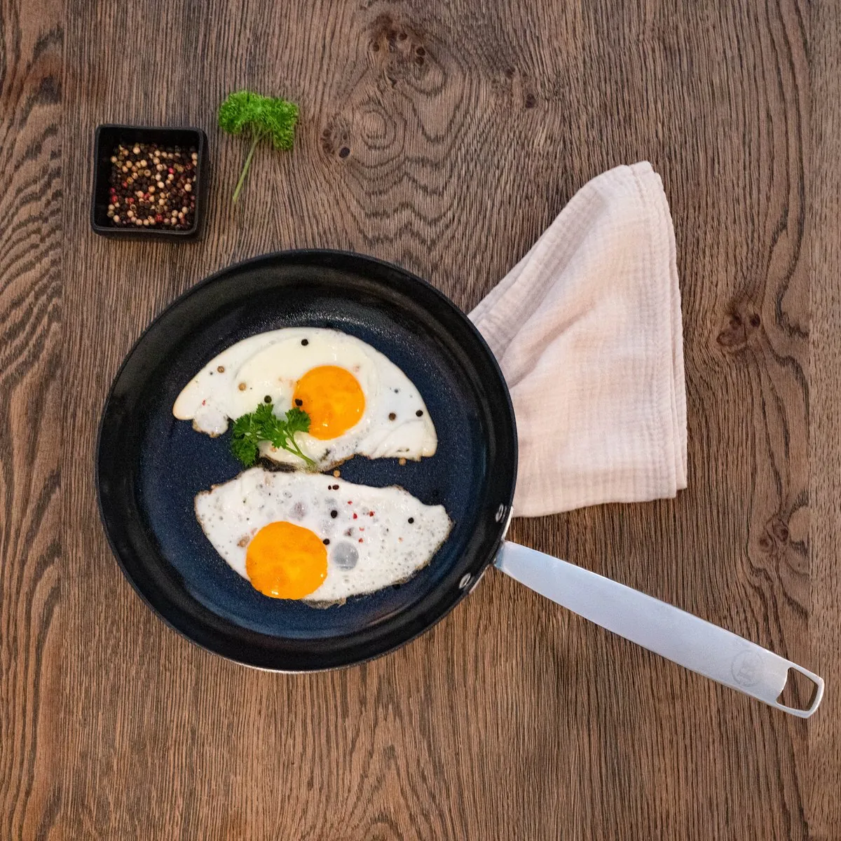 Deze pannenset is volledig vrij van PFAS, zodat je met een gerust hart kunt koken zonder schadelijke chemicaliën die in sommige anti-aanbaklagen voorkomen. Zo maak je een verantwoorde keuze voor jezelf en je gezin.