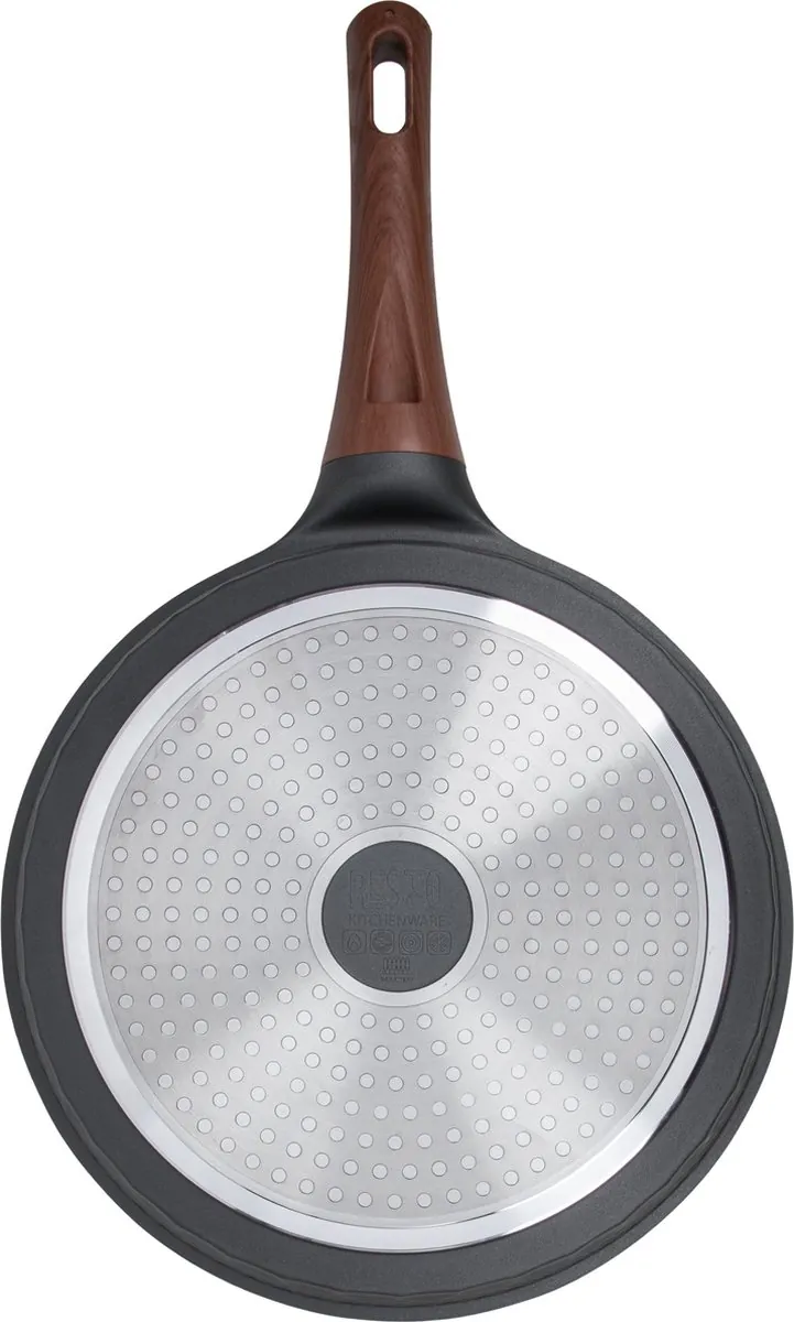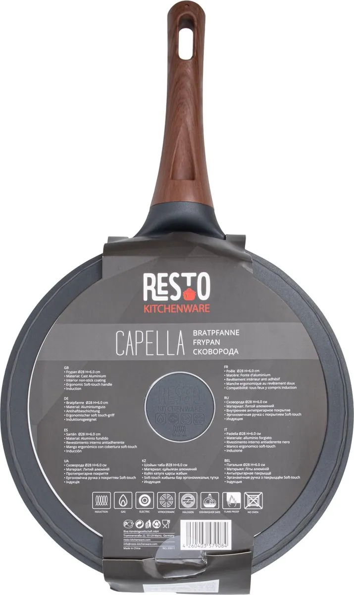 Hittebestendige coating Bij Resto wilden ze een product ontwikkelen dat niet alleen uw kookervaring zou verbeteren, maar ook de tijd en moeite die nodig is om uw kookgerei schoon te maken zou verminderen. Deze pan is ontworpen met een speciale buitenlaag die het oppervlak beschermt tegen verkleuringen, onderhoud vereenvoudigt en zijn oorspronkelijke uitstraling behoudt. De pan is snel en gemakkelijk schoon te maken en op te bergen, zonder dat u lang hoeft te schrobben.