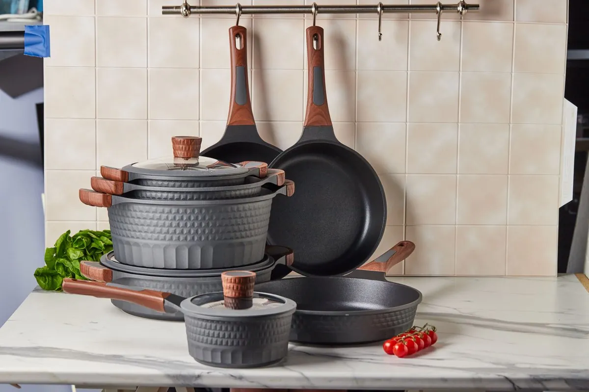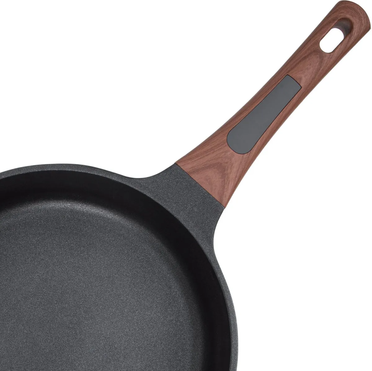 Interne antiaanbaklaag Met behulp van een 4-laags Pfluon antiaanbaklaag biedt dit assortiment van kookgerei een oppervlak dat uitstekende warmtegeleiding, superieure duurzaamheid en gemakkelijk onderhoud biedt. Deze collectie is ontworpen om lang mee te gaan en de 4-laagse coating draagt hieraan bij. Het antiaanbakoppervlak zorgt ervoor dat voedsel minder snel blijft kleven, waardoor u minder tijd hoeft te besteden aan het schrobben en krabben van het oppervlak tijdens het schoonmaken. Dit betekent dat u meer tijd kunt besteden aan het genieten van uw heerlijke maaltijd en minder tijd hoeft te besteden aan het opruimen van uw keukengerei.