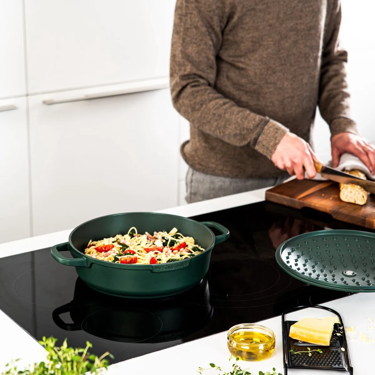 -Veelzijdig en multifunctioneel: koken, bakken, braden, stomen, grillen, wokken met één pannenset